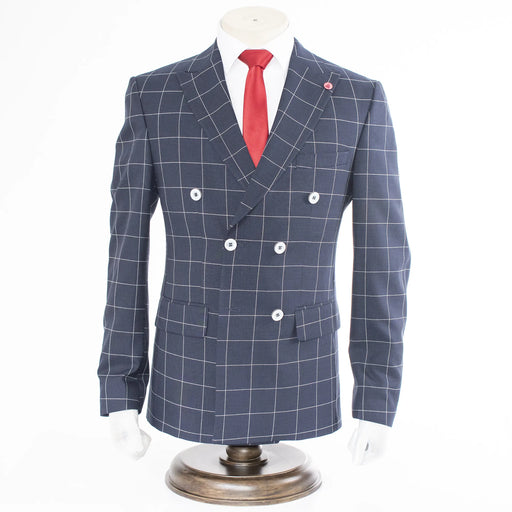 Navy 2-Piece Double-Breasted Checked Tailored-Fit Suit
