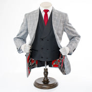 Vintage Glen check plaid accents formal peak lapels to create a mature, refined look in this handsomely styled three-piece suit with a versatile modern-fit and a business-savvy silhouette. Easily worn to the office or as a fine showpiece for weddings or prom events.