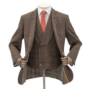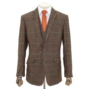 Brown Windowpane Herringbone 3-Piece Slim-Fit Suit