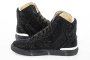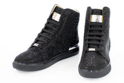 Featuring a striking rhinestone embedded upper accented by a savvy high-top design and wide laces to create instant street appeal for casual or formal outfits.