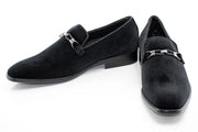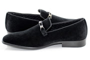 Black Velvet Smoking Loafer with Braided Leather Snaffle