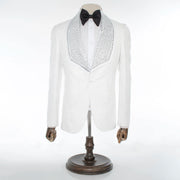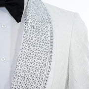 White Floral 2-Piece Slim-Fit Tuxedo with Rhinestone Lapels
