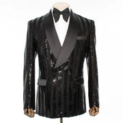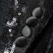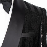Black Sequin Striped Slim-Fit Tuxedo Jacket