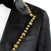 Black Velvet Modern-Fit Tuxedo Jacket with Large Gold Rhinestones