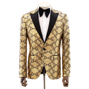 Gold Metallic Qautrefoil Slim-Fit Tuxedo Jacket