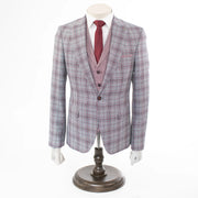 Gray And Red Plaid Slim-Fit 3-Piece Suit