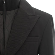 Black stretch Bird's Eye designed Jacket With Removable Waistcoat Piece