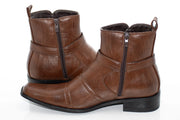 Brown Strap Zip-Boot Square-Toe