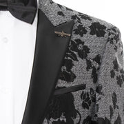 Gray And Black Floral Jacket With Peak Lapels