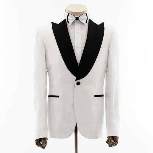 White Damask 3-Piece Slim-Fit Tuxedo with Black Velvet Shawl Lapel
