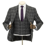 Charcoal Double-Windowpane 3-Piece Tailored-Fit Suit