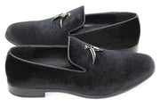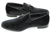 Black Velvet Smoking Loafer with Gunmetal Horn Tassels