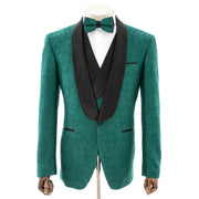 Hunter Green Floral Glitter 3-Piece Tailored-Fit Tuxedo