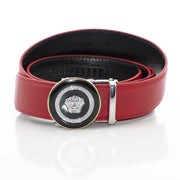 Encircled by finely engraved Grecian detailing, this buckle's designer lionhead adds a touch of power and authority.