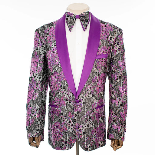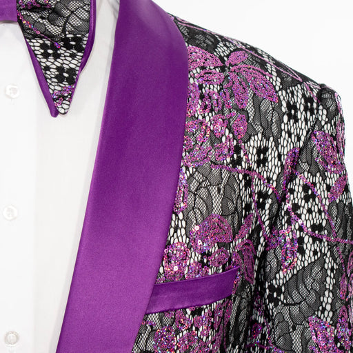 View full detailsPurple Sequined Lace Modern-Fit Tuxedo Jacket