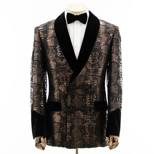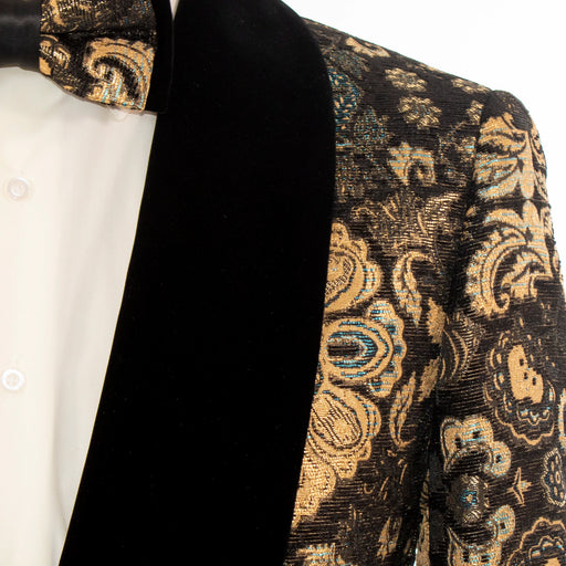 Black and Gold Paisley Slim-Fit Tuxedo Jacket