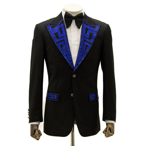 View full detailsBlack with Royal Blue Rhinestone Lapel Modern-Fit Tuxedo Jacket