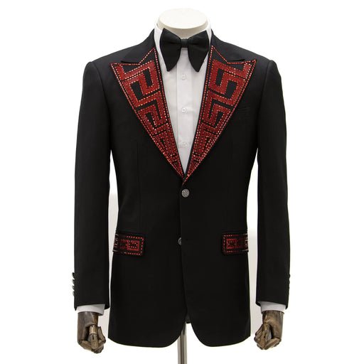 Black with Red Rhinestone Lapel Modern-Fit Tuxedo Jacket