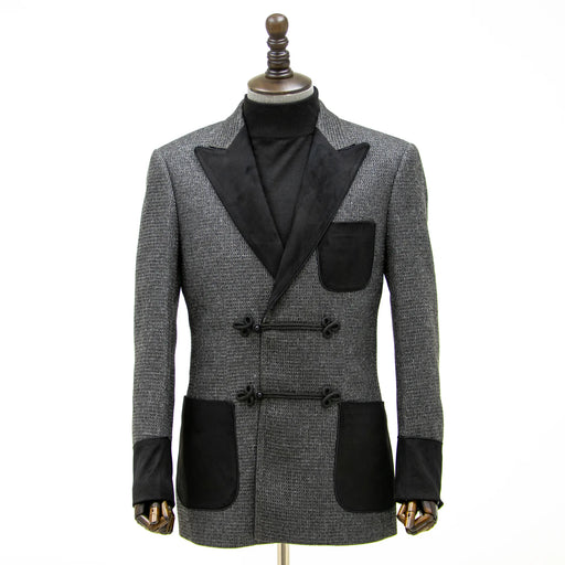 View full detailsCharcoal Waffle-Weave Modern-Fit Tuxedo Jacket with Velvet Trim