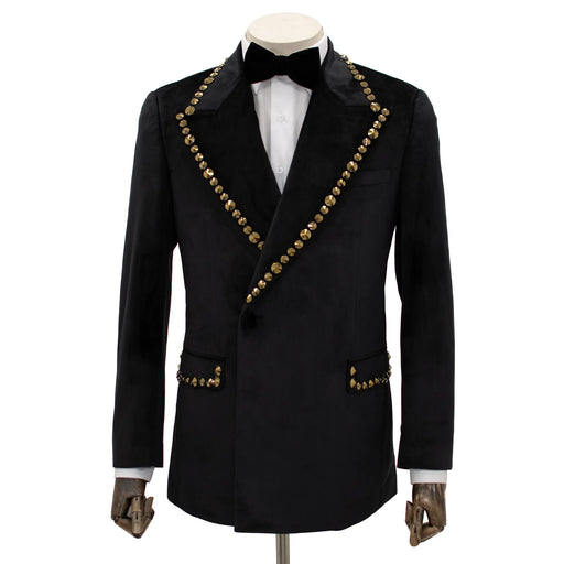 Black Velvet Modern-Fit Tuxedo Jacket with Large Gold Rhinestones