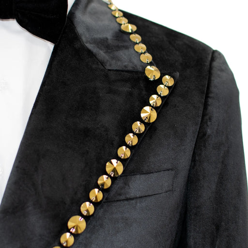 Black Velvet with Gold Rhinestones Mopdern-Fit Tuxedo Jacket