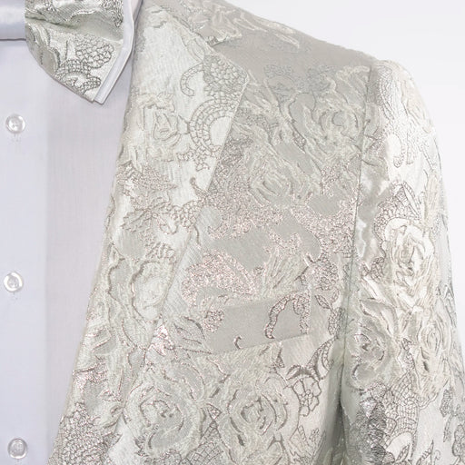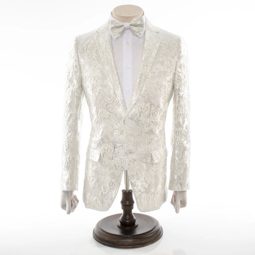 White Paisley Designer Modern-Fit Jacket With Notch Lapels