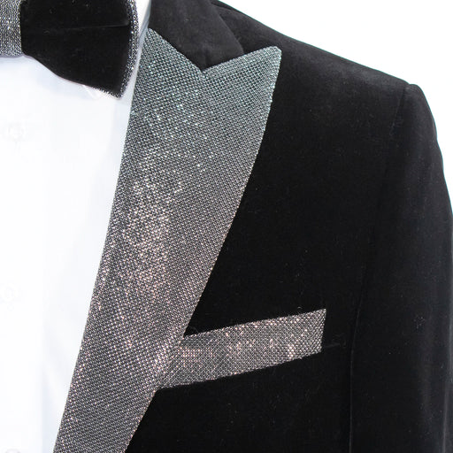 Black Velvet Regular-Fit Jacket with Silver Peak Lapel