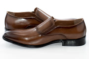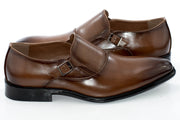 A finely textured monk strap brings handsome style to this sleek leather loafer with a contrast colored toe on top of a black outsole.