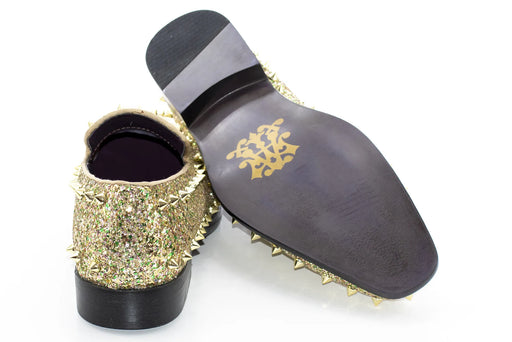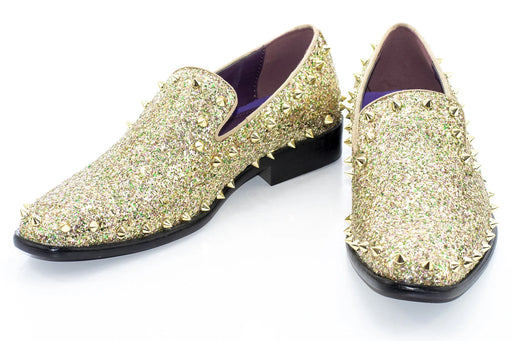 You'll make an impression in this boldly styled loafer with a vibrant upper of technicolor glitter and spiked trimming along the welt and topline.