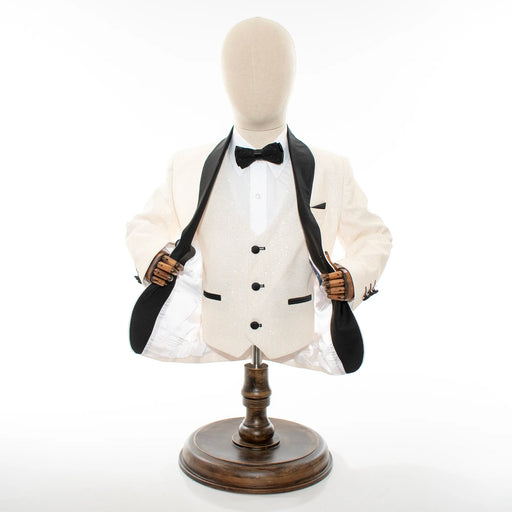 Cream Glitter 3-Piece Kids' Tuxedo with Matching Waistcoat