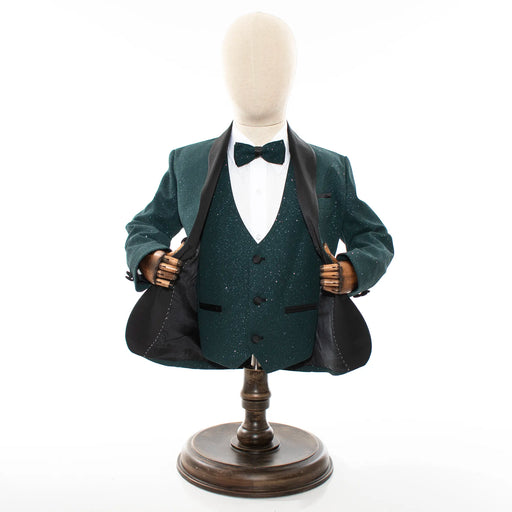 Hunter Greeen Glitter 3-Piece Kids' Tuxedo with Matching Waistcoat
