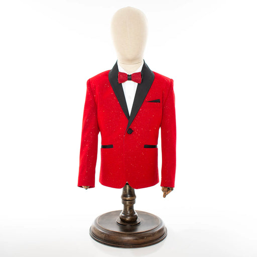 Red Glitter 3-Piece Kids' Tuxedo with Matching Waistcoat