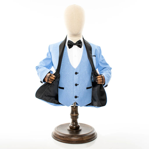Sky Blue Glitter 3-Piece Kids' Tuxedo with Matching Waistcoat