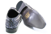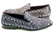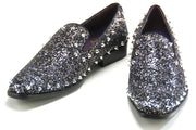 You'll make an impression in this boldly styled loafer with a vibrant upper of technicolor glitter and spiked trimming along the welt and topline.