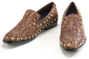 You'll make an impression in this boldly styled loafer with a vibrant upper of technicolor glitter and spiked trimming along the welt and topline.