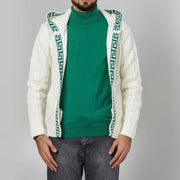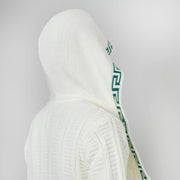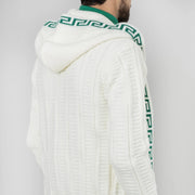 White&Green Cable Knit Grecian Tailored-Fit Hooded Cardigan